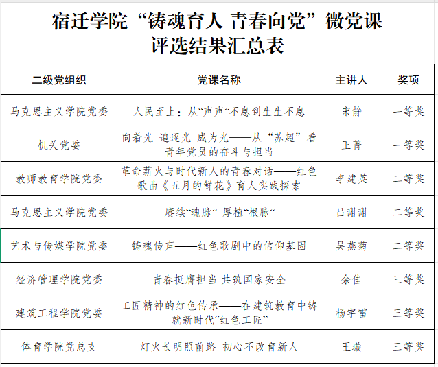 宿迁学院“铸魂育人 青春向党”微党课评选结果公示